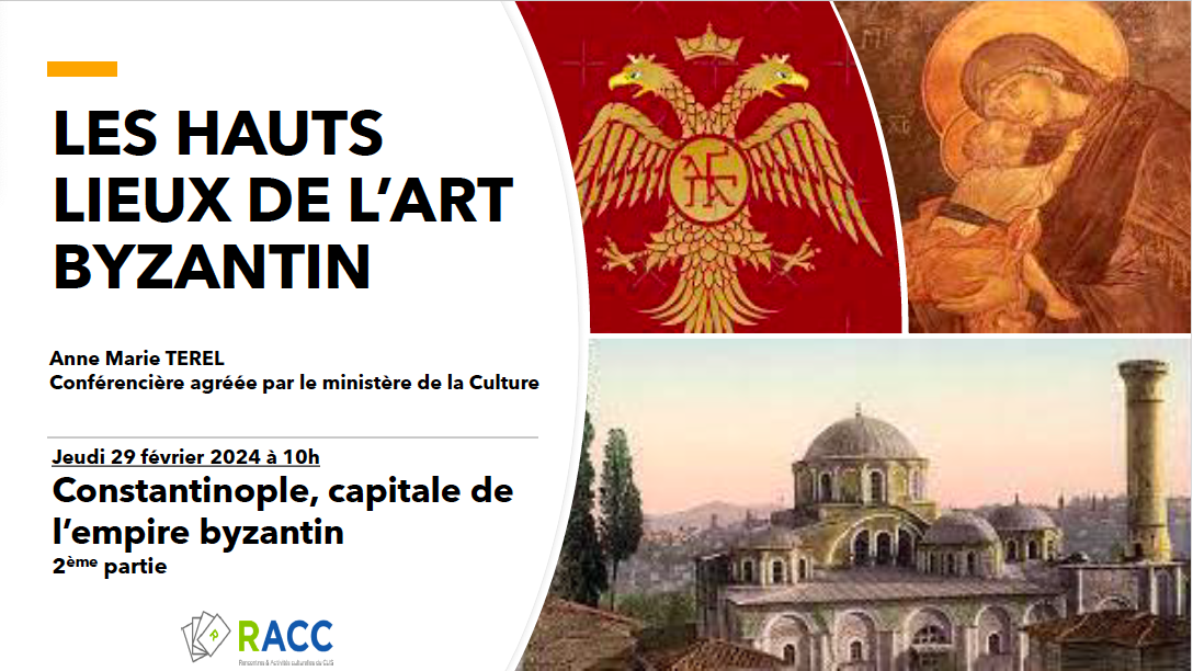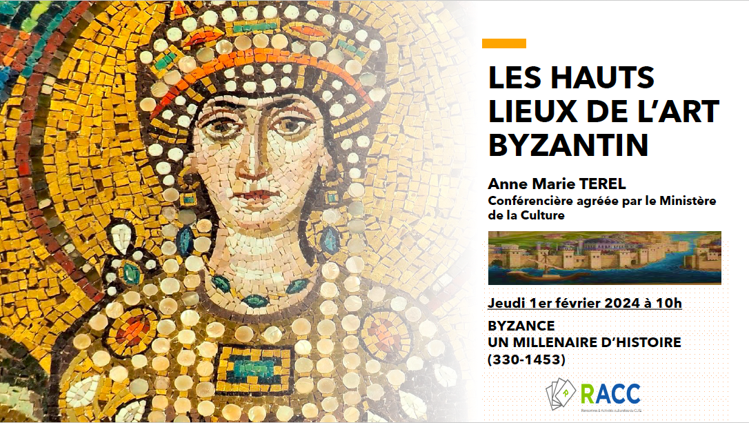 En 330, l’empereur romain Constantin transporte sa capitale de Rome à Constantinople sur les rives du Bosphore. C’est le début d’un millénaire d’art et d’histoire dit byzantin, pendant lequel Byzance est le principal foyer artistique de l’Orient médiéval. L’héritage de l’Antiquité gréco-romaine s’adapte peu à peu à l’expression d’un art impérial et chrétien. L’art byzantin naît dans la capitale, d’où les principales impulsions se diffusent aux quatre coins de l’empire et même au-delà. Chefs-d’œuvre architecturaux et chatoyantes mosaïques à fond d’or sont inséparables du monde religieux – en Asie mineure, en Grèce et en Italie notamment – mais les artistes s’expriment également dans l’architecture civile : palais impérial, hippodrome, remparts, aqueducs et citernes de la capitale. La peinture de manuscrits, l’art de l’icône et la fabrication d’objets d’art dans les matériaux les plus précieux sont d’autres facettes de l’art byzantin. A la fois immuables et évolutifs, thèmes et styles se succèdent au fil des siècles.